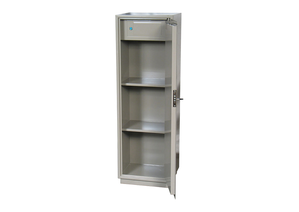 Шкаф для хранения документов и небольших сумм денег. Шкаф изготовлен из стали толщиной 1,4 мм, дверь изнутри усилена стальным листом толщиной 0,8мм. В двери шкафов с индексом КБС установлен сувальдный замок "Просам" производства Россия, в шкафах с индексом КБ установлено замок "KALE" производства Турция. Шкафы сварные. Расстояние между полками и глубина шкафа рассчитаны для удобного хранения и работы с папками формата А4 или "Корона", полки несъемные. В шкафах с индексом «Т» внутри встроена дополнительная ячейка с отдельным ключом – трейзер.