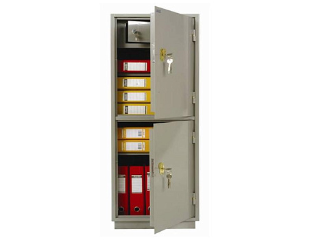 Шкаф для хранения документов и небольших сумм денег. Шкаф изготовлен из стали толщиной 1,4 мм, дверь изнутри усилена стальным листом толщиной 0,8мм. В двери шкафов с индексом КБС установлен сувальдный замок "Просам" производства Россия, в шкафах с индексом КБ установлено замок "KALE" производства Турция. Шкафы сварные. Расстояние между полками и глубина шкафа рассчитаны для удобного хранения и работы с папками формата А4 или "Корона", полки несъемные. В шкафах с индексом «Т» внутри встроена дополнительная ячейка с отдельным ключом – трейзер.