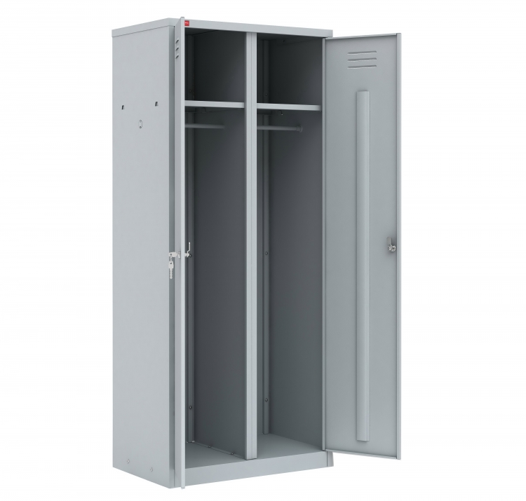 Двухсекционные разборные раздевальные шкафы модели ШРМ-АК используются для хранения верхней и сменной одежды. Каждое отделение оснащено полкой для хранения головных уборов. Порошковое полимерное покрытие, цвет – светло-серый RAL 7035. Собирается при помощи саморезов.