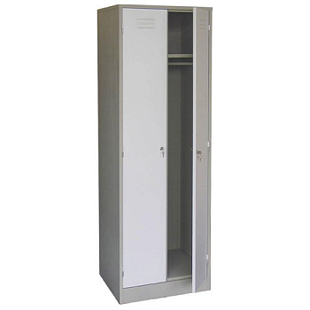 Двухсекционные раздевальный шкаф модели ШРМ-С используются для хранения верхней и сменной одежды. Каждое отделение оснащено полкой для хранения головных уборов. Порошковое полимерное покрытие, цвет – светло-серый RAL 7035. Поставляется в собранном виде.
