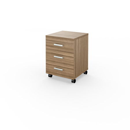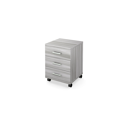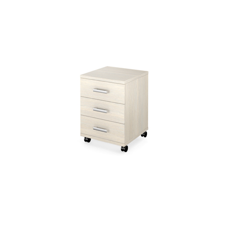 Мобильная тумба выполнена из ДСП толщиной 25 мм. Противоударная кромка ПВХ в цвет изделия. Толщина кромки 2 мм. Ручки выполнены из металла. Тумба имеет три выдвижных ящика на роликовых направляющих.
