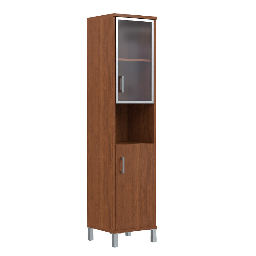 ГлавнаяКаталог офисной мебелиМебель для руководителейКабинет BORNШкаф узкий с глухой и стеклянной в ал.раме дверьми В 431.9 R(475x450x2054)