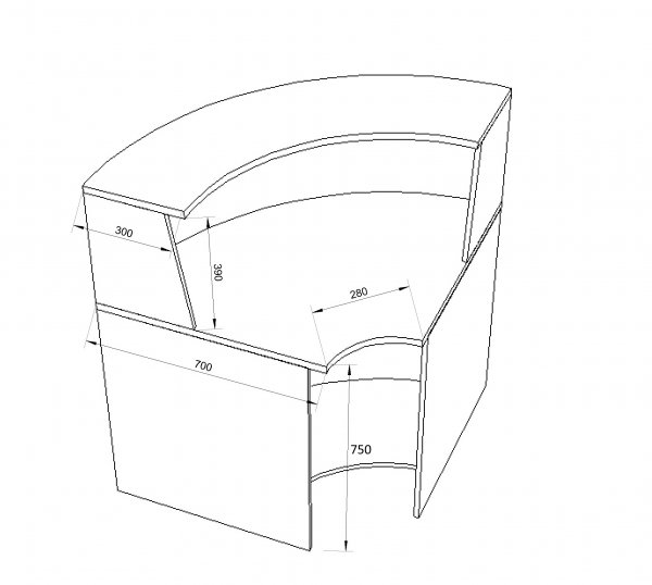 Стойка ресепшн угловая (90°) Э-27.3 (900x900x1170)